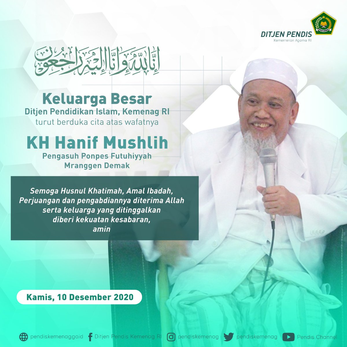 Pendidikan Islam Pa Twitter Innalillahi Wainna Ilaihi Rajiun Keluarga Besar Direktorat Jenderal Pendidikan Islam Kementerian Agama Ri Turut Berduka Cita Atas Wafatnya Kh Hanif Mushlih Pengasuh Pondok Pesantren Futuhiyyah Mranggen Demak Jawa