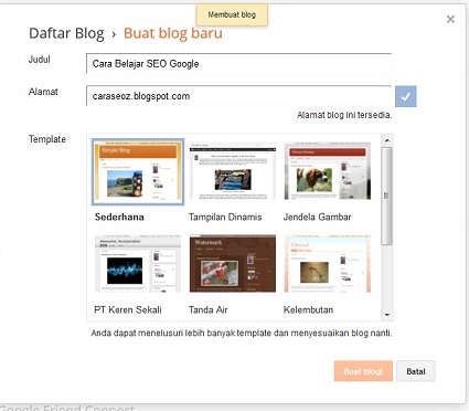 Cara Membuat Blog Gratis Di Blogspot Blogger Belajar Seo Blog Bisnis Online Indonesia