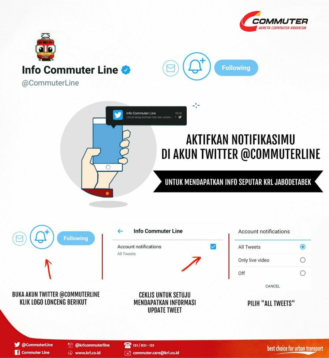 Kai Commuter عÙ٠تÙÙØªØ± Aktifkan Notifikasi Rekancommuters Di Akun Twitter Commuter Line Untuk Mendapatkan Informasi Seputar Krl Commuter Indonesia Https T Co Fzuekc4bz5