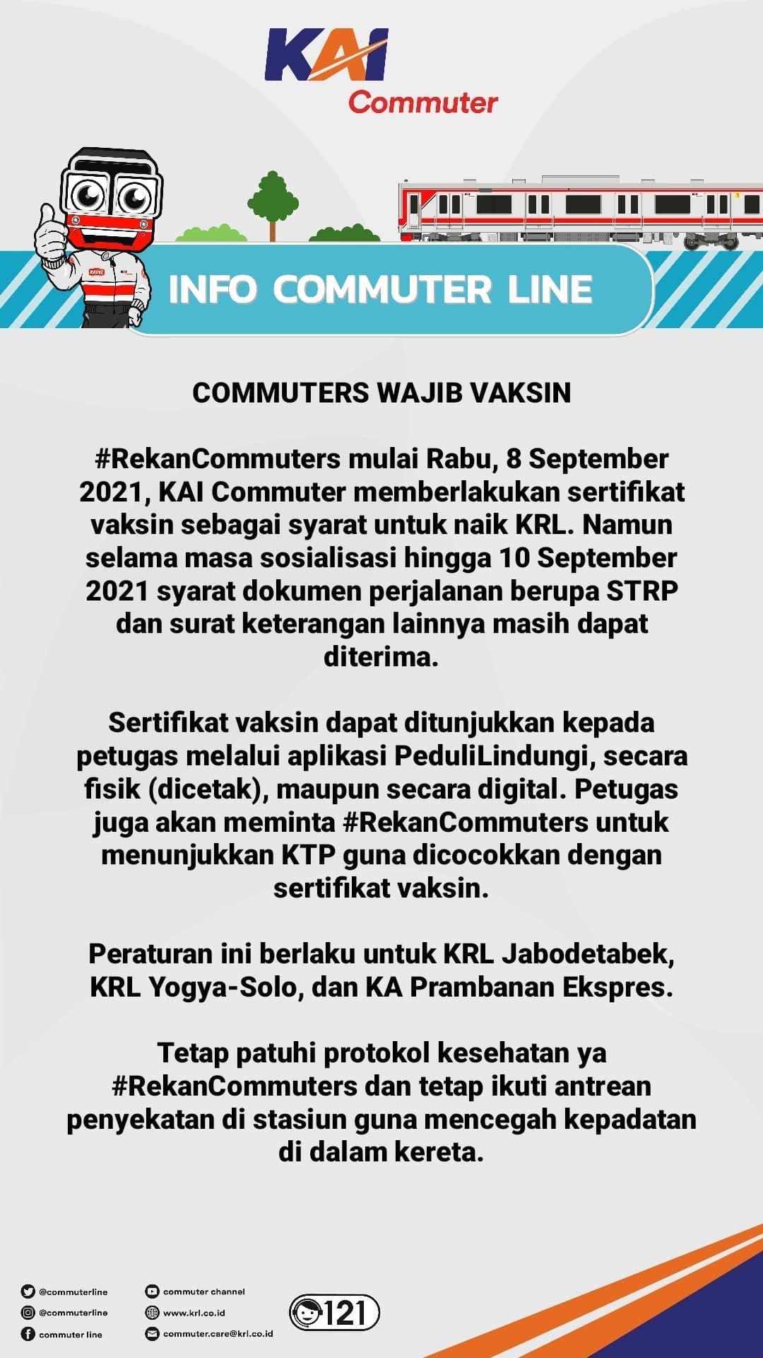 Kai Commuter A Twitter Selamat Pagi Saat Ini Sertifikat Vaksin Tidak Menjadi Dokumen Perjalanan Yg Wajib Dilengkapi Pengguna Krl Bagi Calon Pengguna Yg Sudah Sesuai Ketentuan Silakan Cukup Menunjukkan Salah Satu Dari