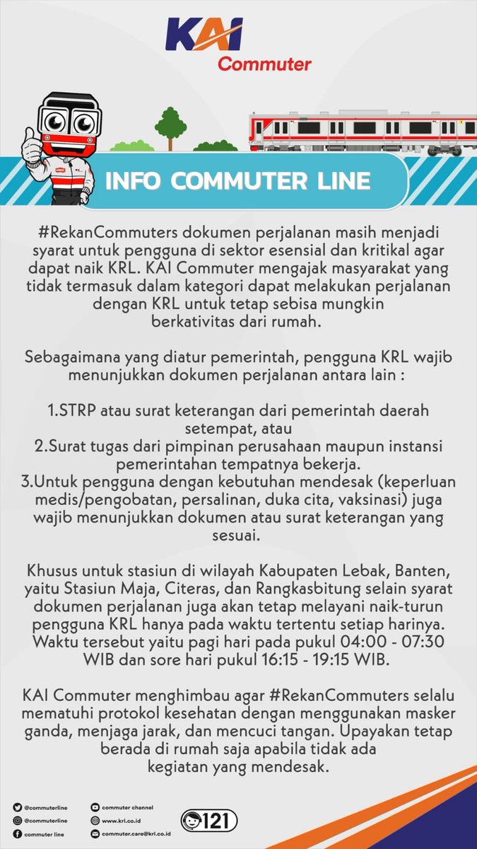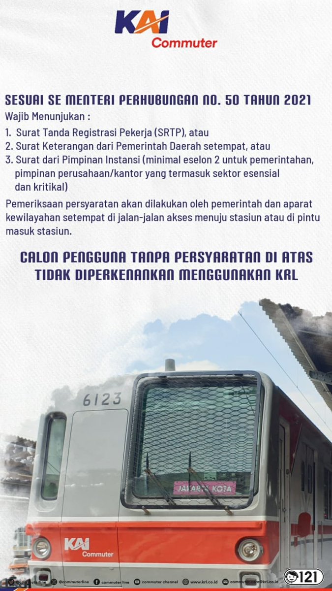 Kai Commuter On Twitter Rekancommuters Krl Hanya Melayani Pekerja Sektor Esensial Dan Kritikal Mulai 12 Juli 2021 Sesuai Se Menteri Perhubungan No 50 Tahun 2021 Wajib Menunjukkan Surat Sebagai Berikut Https T Co O1oikemldk
