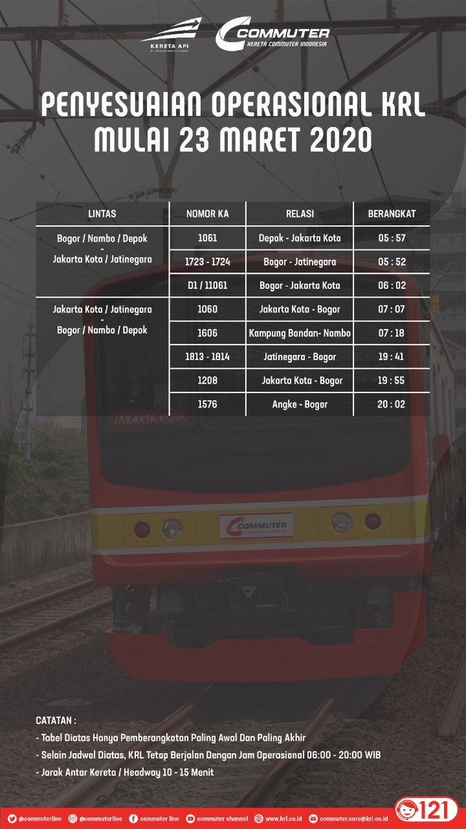 Kai Commuter On Twitter Rekancommuters Berikut Jadwal Pemberangkatan Krl Pertama Dan Berikut Jadwal Perjalanan Commuter Line Pencegahan Penyebaran Virus Covid 19 Mulai 23 Maret 2020 Info Lengkap Bisa Dilihat Melalui Website Https T Co Eskeim9ufz