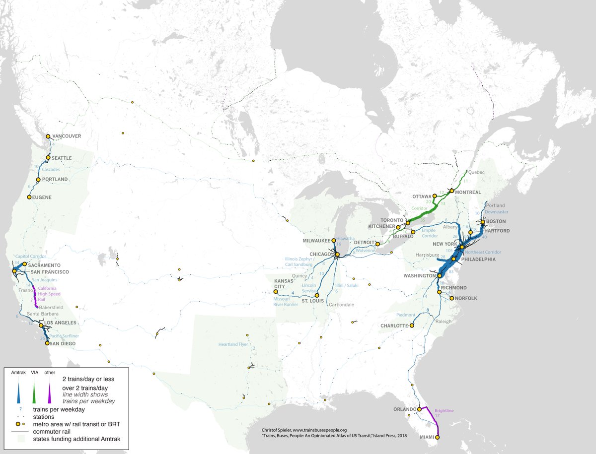 Christof Spieler On Twitter Here S An Updated Version With Complete Commuter Rail All Rail Brt Systems Shown Line Thickness Scaled To Trains Day And States That Fund Amtrak Corridors Shaded Thanks To Everyone For