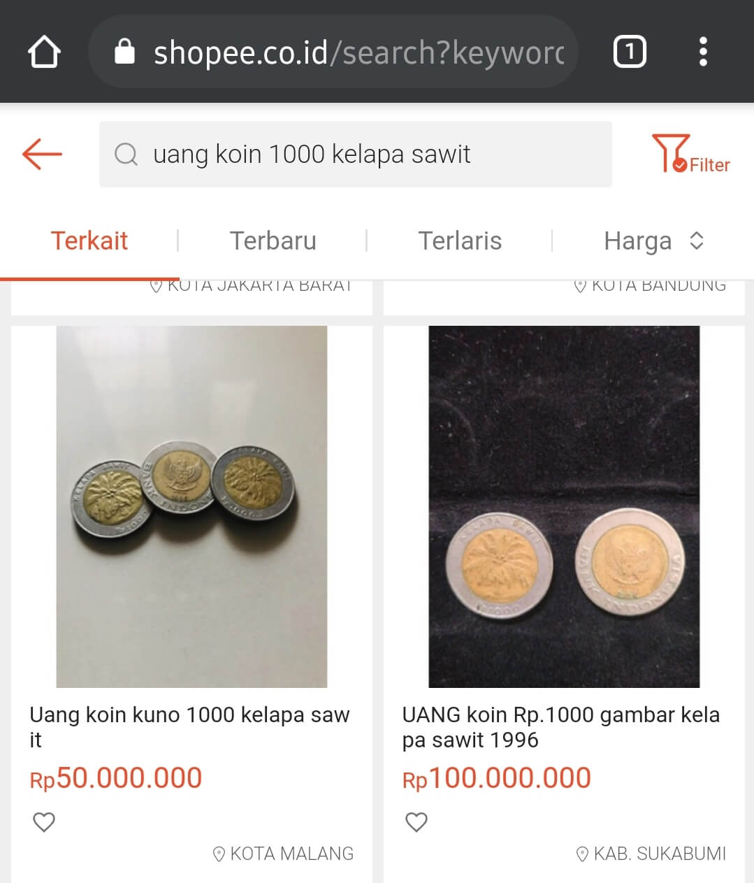 Intip Harga Uang Koin Rp 1000 Bergambar Kelapa Sawit Yang Masih Dijual Di Online Shop Bangkapos Com