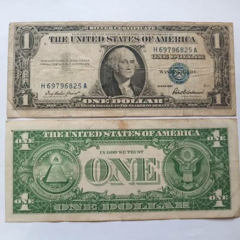 Uang Kertas 1 Dollar Amerika Serikat 1957 Silver Certificates Small Size Series Of 1957 Wor P 419a