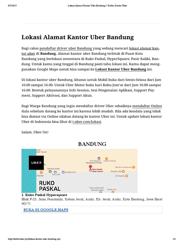 Alamat Kantor Uber Bandung Mobil Dan Motor Daftar Uber Online