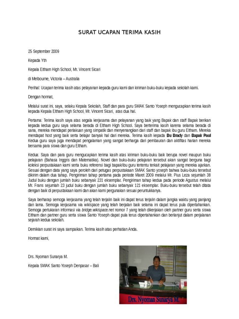 Contoh Surat Terima Kasih Untuk Guru Dalam Bahasa Inggris Sederet Com