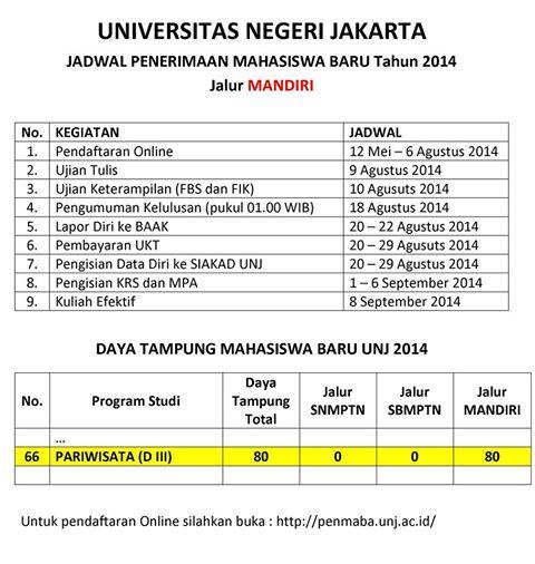 Pariwisata Unj Sur Twitter Quota Seat D3 Usaha Jasa Pariwisata Unj 2014 Adalah 80 Seat Melalui Jalur Mandiri Klik Http T Co U16dasez5w Http T Co Ozjhoub5zn