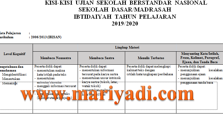 Download Kisi Kisi Usbn Us Un Sd 2020 Semua Pelajaran Mariyadi Com