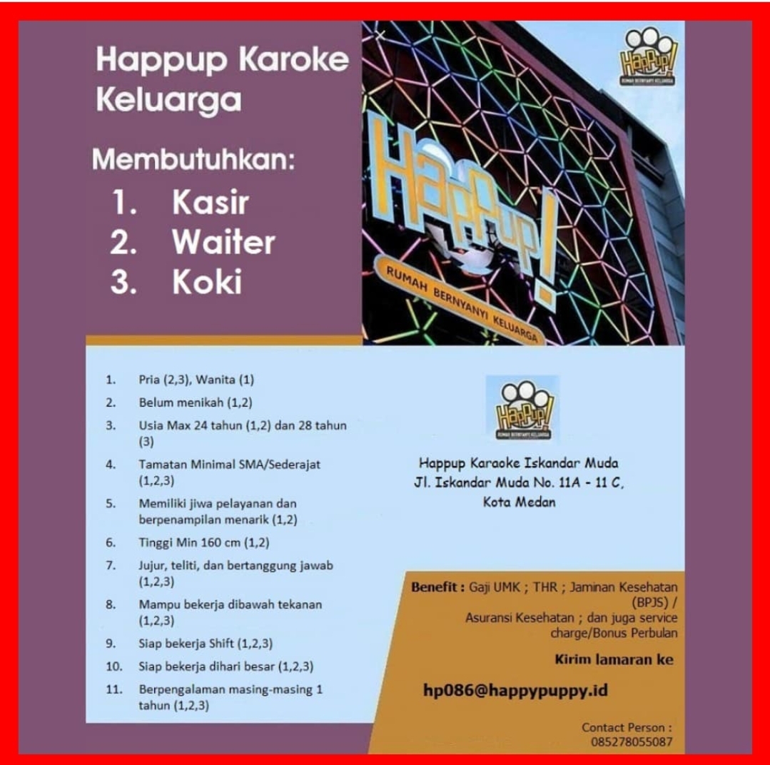 Lowongan Kerja Sma Smk Medan Mei 2021 Di Happup Karaoke Keluarga Lowongan Kerja Medan Terbaru Tahun 2021