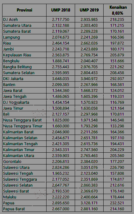 Upah Minimum Provinsi 2019 Seluruh Indonesia Lowongan Kerja Terbaru Indonesia 2021