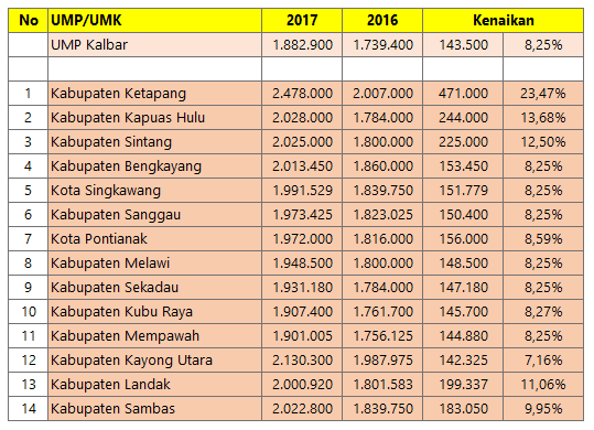 Upah Minimum Kabupaten Kota Umk Di Kalbar 2017 Biaya Dan Tarif