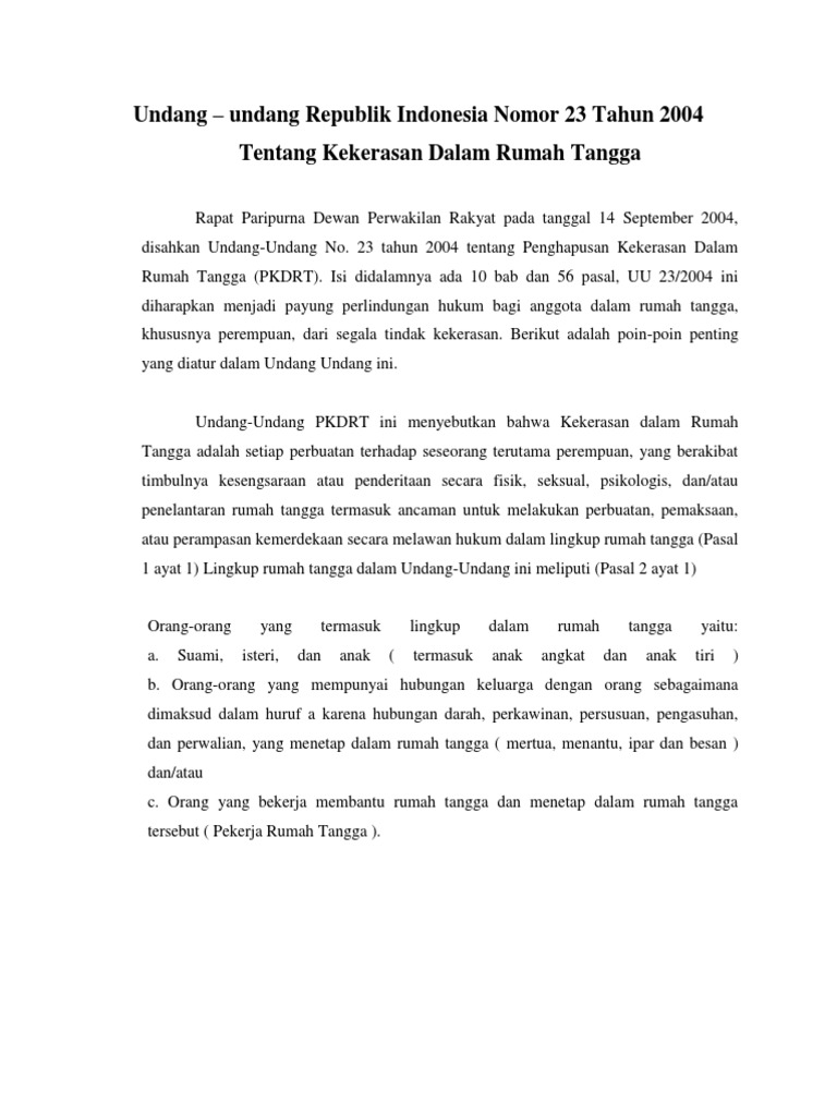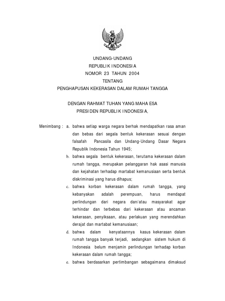 Undang Undang R I No 23 Tahun 2004 Tentang Penghapusan Kekerasan Dalam Rumah Tangga Kdrt Belbuk Com