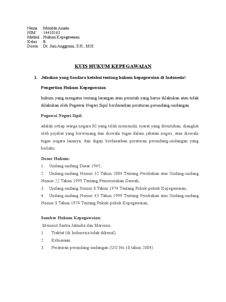 Sumber Hukum Kepegawaian Hak Dan Kewajiban Pegawai Negeri