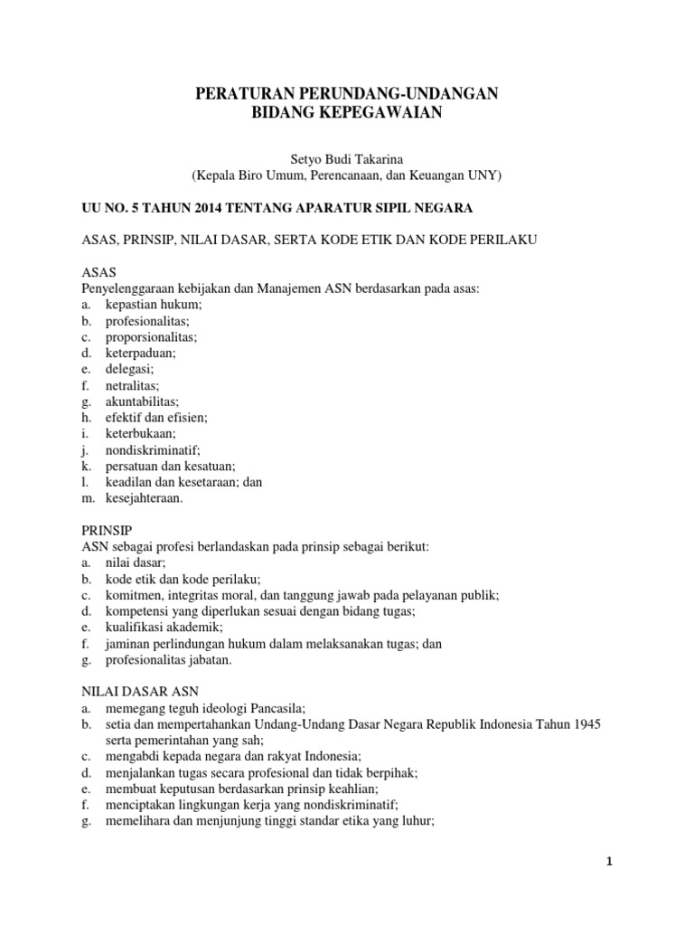 Uu No 8 Ttg Pokok Pokok Kepegawaian