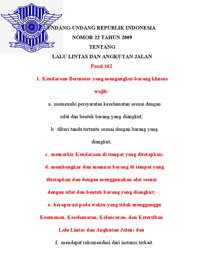 Undang Undang Republik Indonesia Nomor 22 Tahun 2009 Tentang Lalu Lintas Dan Angkutan Jalan Pid Polda Kepri