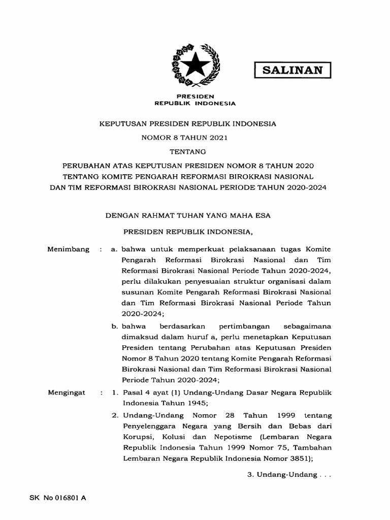 Perpres Nomor 8 Tahun 2021 Tentang Kebijakan Umum Pertahamam