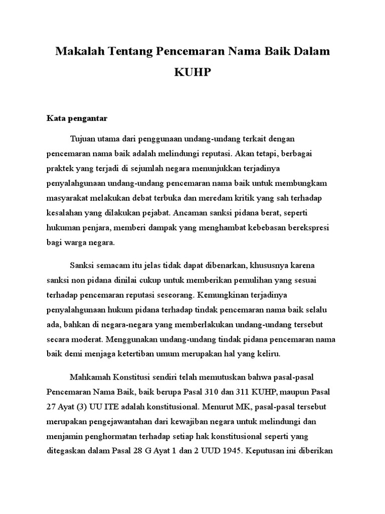 Pencemaran Nama Baik Dalam Kuhp Dinding Hukum