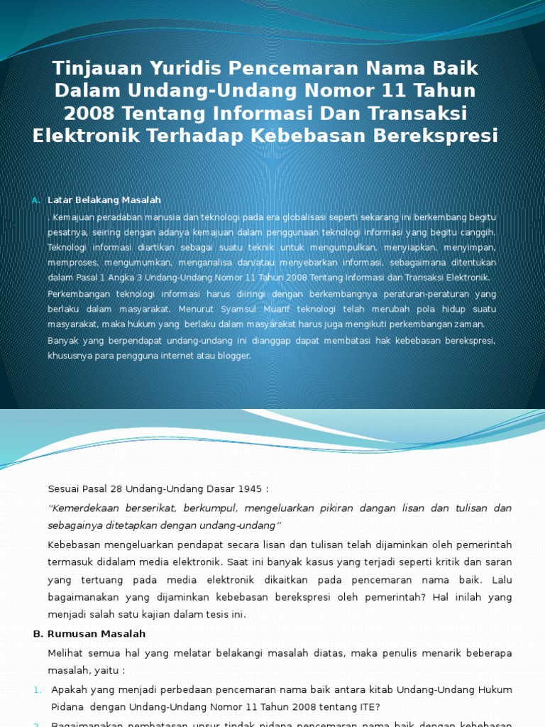 Tindak Pidana Pencemaran Nama Baik Di Dalam Kuhp Dan Undang Undang Nomor 11 Tahun 2008 Tentang Informasi Dan Transaksi Elektronik Artikel Ilmiah Pdf Download Gratis