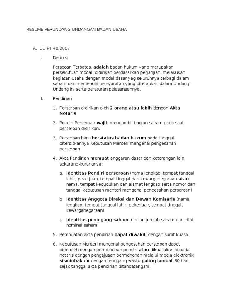 Undang Undang Pt No 40 Tahun 2007 Solusi Legalitas Indonesia