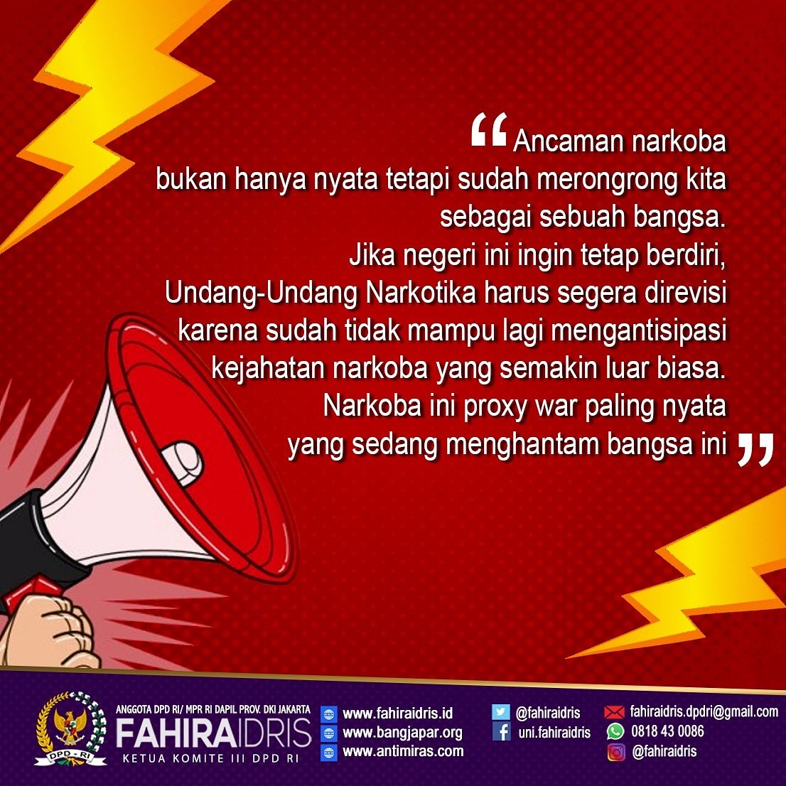 Fahira Idris Dpd Ri در تÙÛÛØªØ± Ancaman Narkoba Bukan Hanya Nyata Tetapi Sudah Merongrong Kita Sebagai Sebuah Bangsa Jika Negeri Ini Ingin Tetap Berdiri Undang Undang Narkotika Harus Segera Direvisi Karena Sudah Tidak