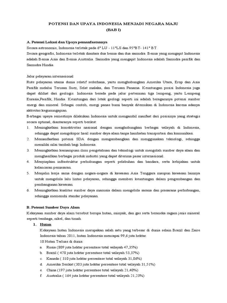 Makalah Potensi Dan Upaya Indonesia Menjadi Negara Maju Doc Pdf Download Contoh Makalah Lengkap