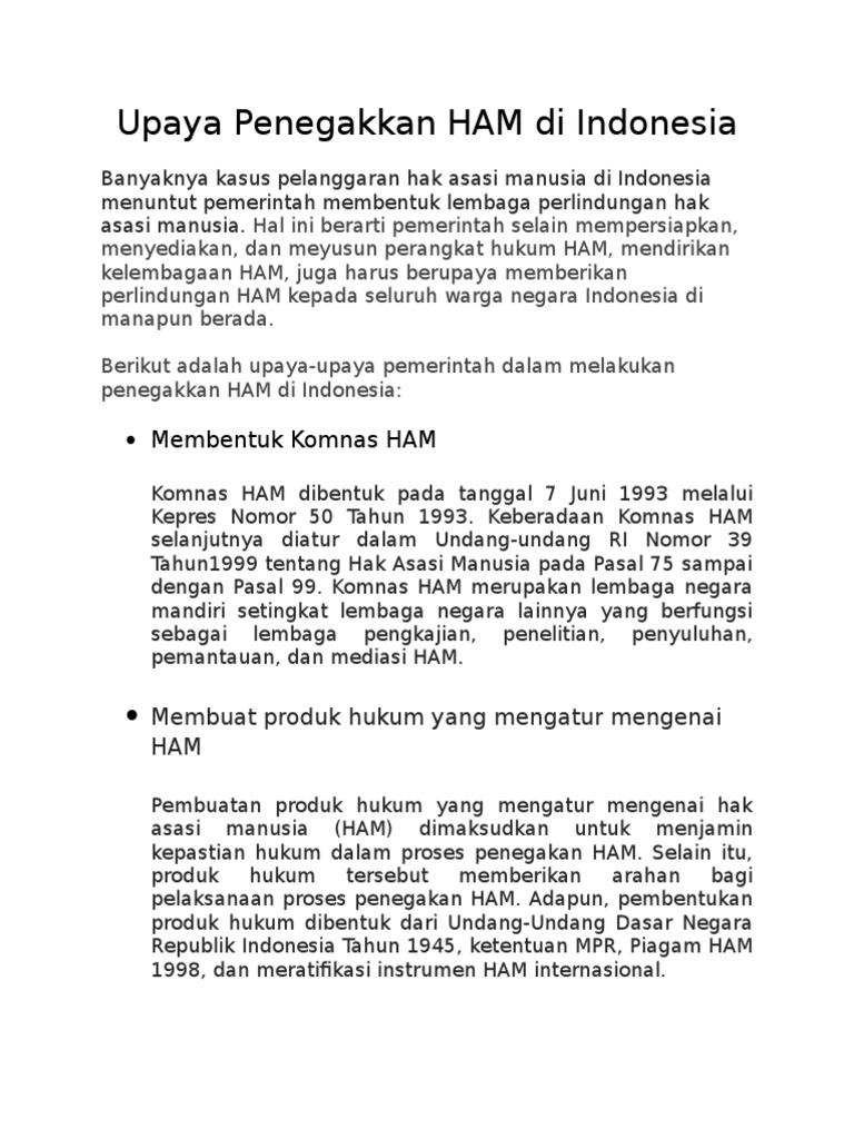 Upaya Pemerintah Dalam Menegakkan Ham Di Indonesia Afikrubik