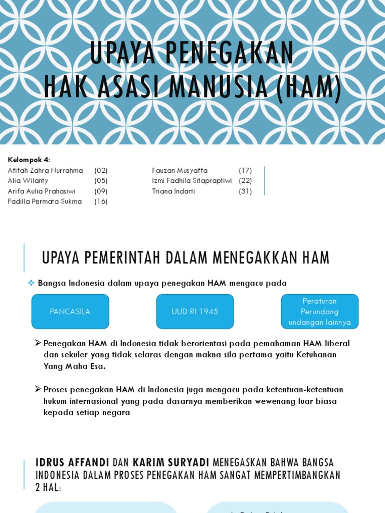 Upaya Perlindungan Dan Penegakan Ham Di Indonesia Kelompok 4 Ips 3