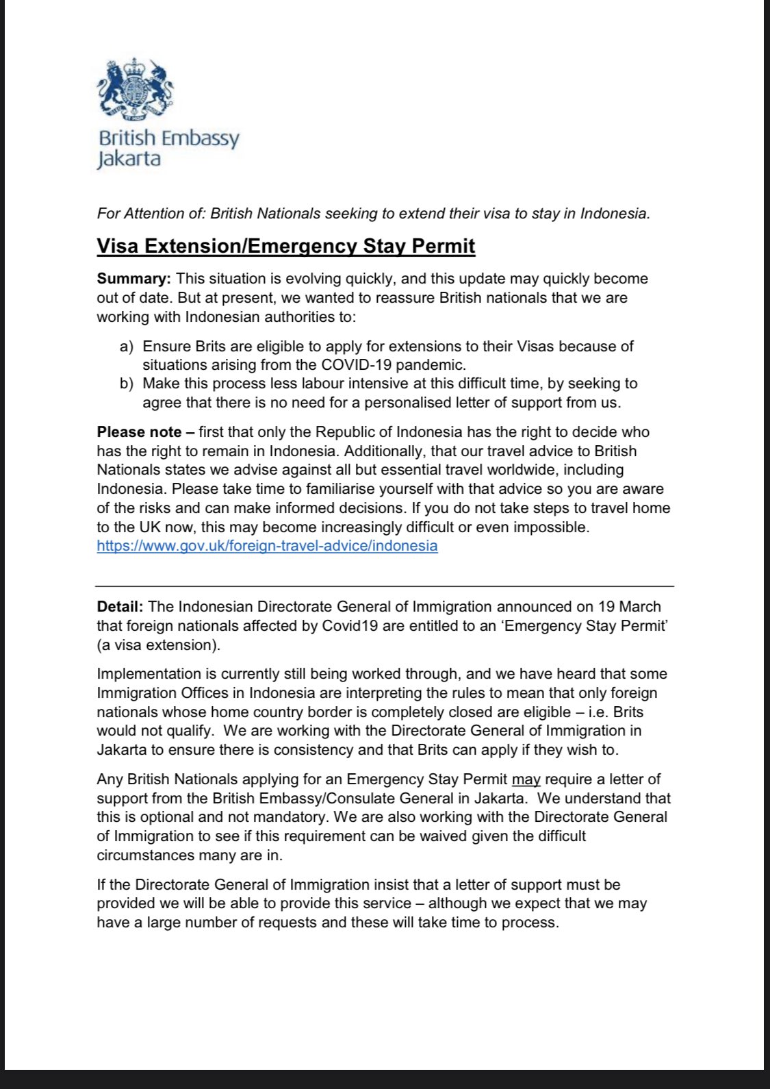 Uk In Indonesia A Twitter 7 Please See This Update If You Are A Brit Seeking An Emergency Extension To Your Visa