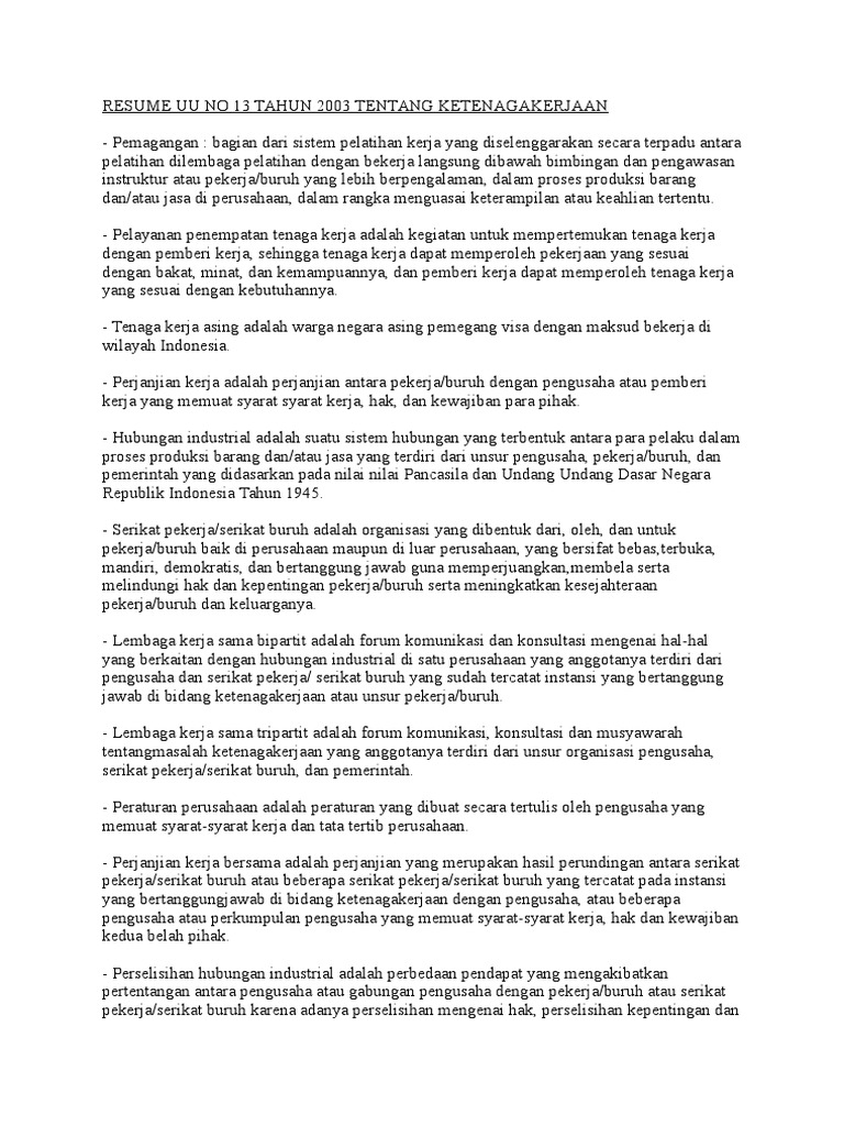 Undang Undang Republik Indonesia Nomor 13 Tahun 2003 Free Download Pdf