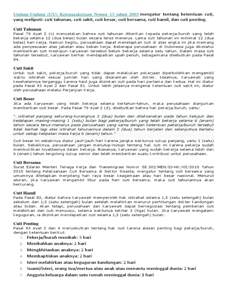 Uu No 13 Tahun 2003 Tentang Ketenagakerjaan Dan Penjelasannya Hrd Practice