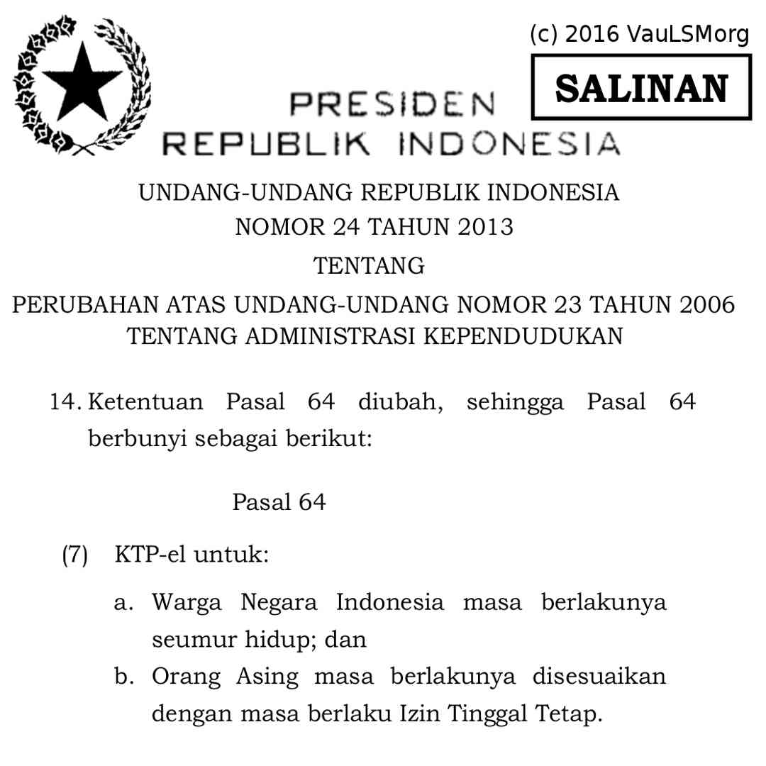 Undang Undang Republik Indonesia Nomor 24 Tahun 2013 Tentang Perubahan Atas Undang Undang Nomor 23 Tahun 2006 Tentang Administrasi Kependudukan Pdf Free Download