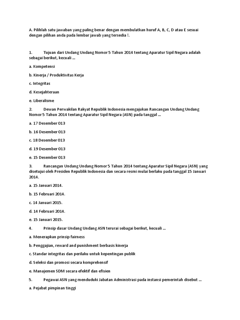 Soal Tes Cpns Skb Materi Uu No 5 Tahun 2014 Tentang Aparatur Sipil Negara Asn Youtube