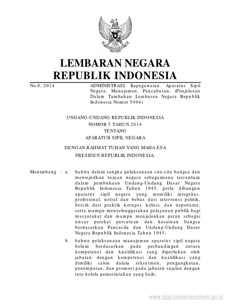 Uu No 5 Tahun 2014 Tentang Asn Pdf Tentang Tahun