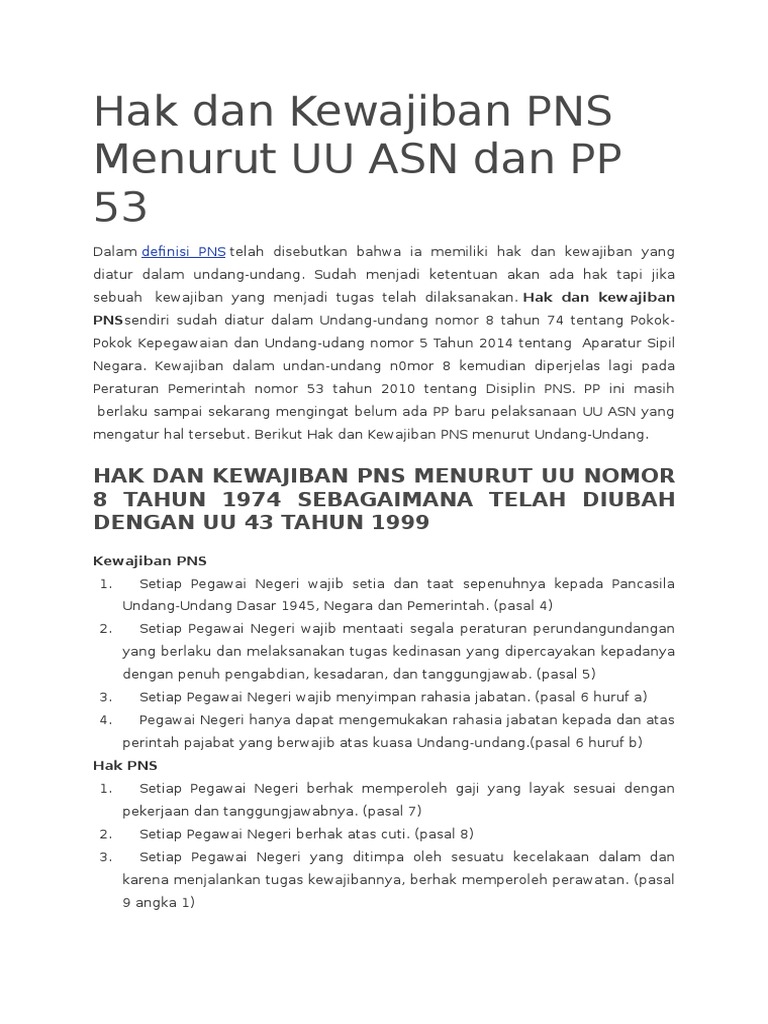 Hak Dan Kewajiban Pns Menurut Uu Asn Dan Pp 53 Pdf
