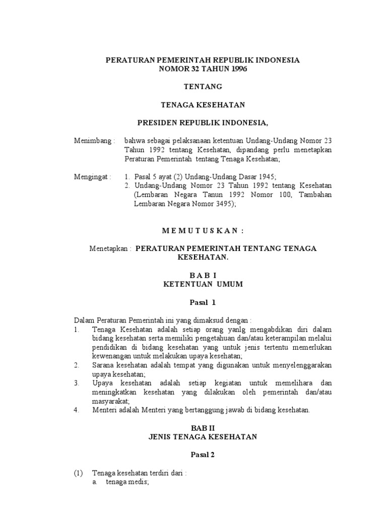 Uu Ri No 23 Tahun 1992 Tentang Kesehatan Bab L Pasa L Ayat L Tenaga Kesehatan Adalah Setiap Pdf Document