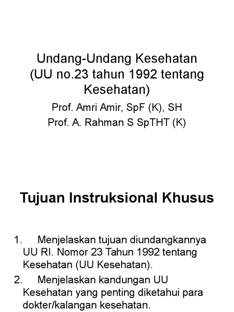 Undang Undang Kesehatan No 23 Tahun 1992 Tentang Tahun
