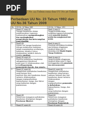 Perbedaan Uu No Tentang Kesehatan No 23 Tahun 1992 Dan Uu No 36 Tahun 2009 Pdf Txt