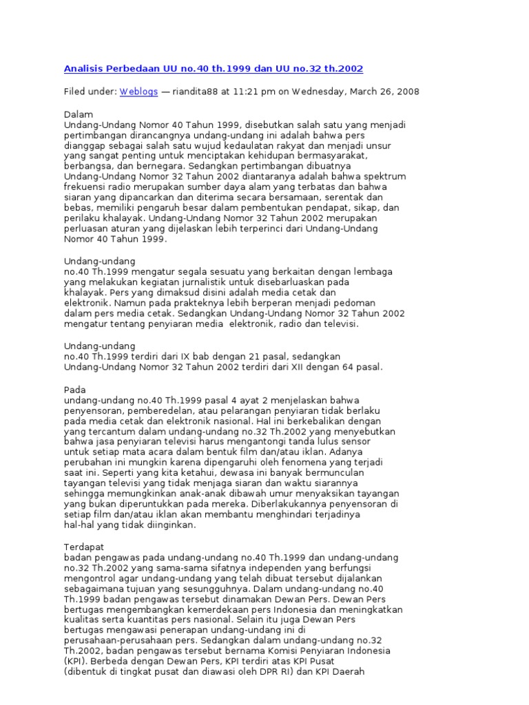 Uu 32 Tahun 2002 Tentang Penyiaran Jogloabang