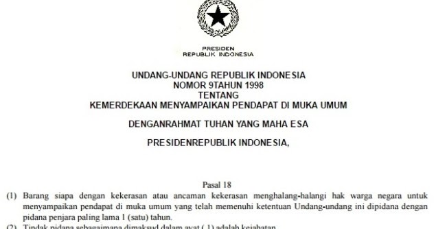 Uu No 9 1998 Menghalangi Hak Warga Menyampaikan Pendapat Di Muka Umum Adalah Tindakan Pidana Portal Islam