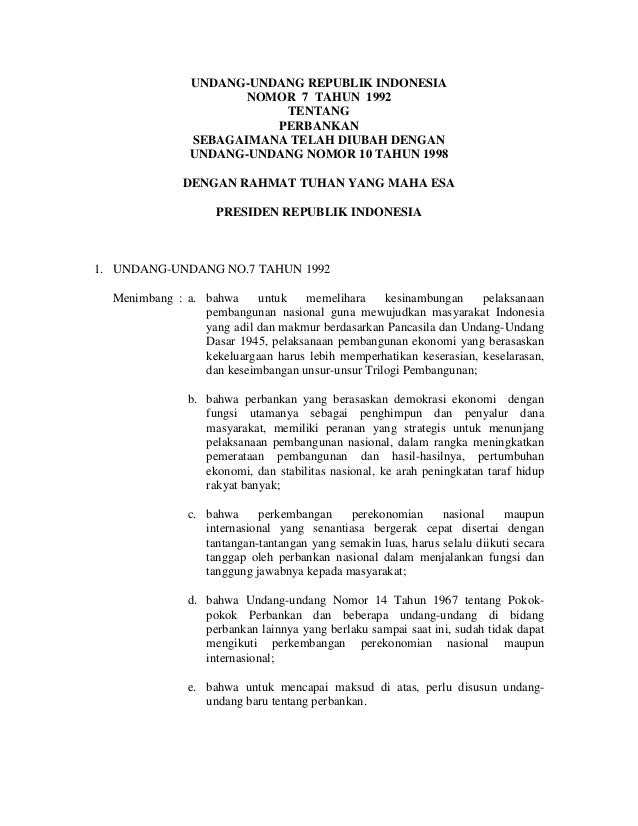 Uu Nomor 10 Tahun 1998 Tentang Perbankan