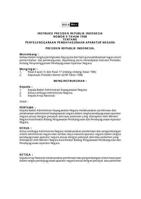 Instruksi Presiden Republik Indonesia Nomor 9 Tahun 1998 Tentang