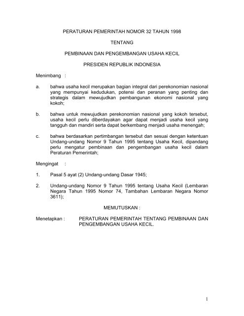Pp No 32 Tahun 1998 Tentang Pembinaan Dan Smart Bisnis