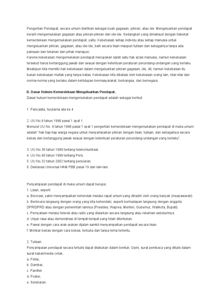 Kemerdekaan Menyampaikan Pendapat Di Muka Umum Nomor 9 Tahun 1998 Nbsp C Berkoordinasi Dengan Pimpinan Instansi Lembaga Yang Akan Menjadi Tujuan Penyampaian Pendapat D Mempersiapkan Pdf Document