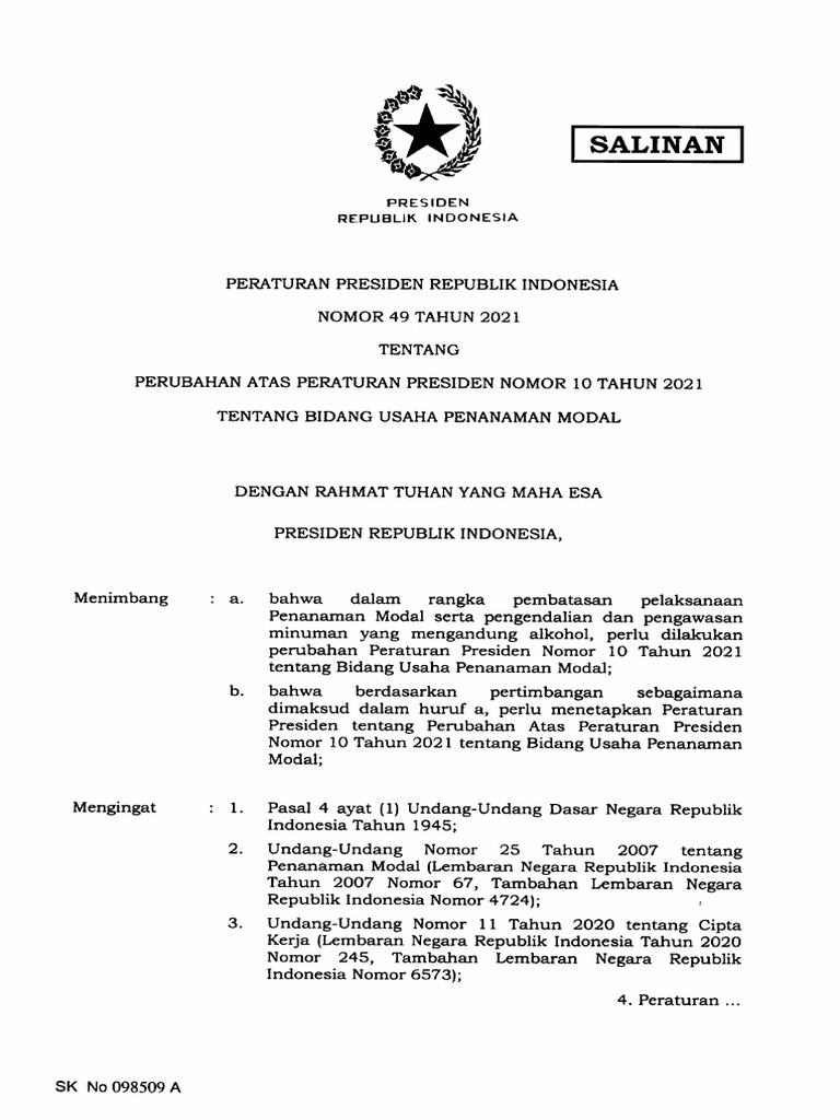 Ini Pasal Pada Perpres Nomor 10 Tahun 2021 Yang Legalkan Miras Biem Co
