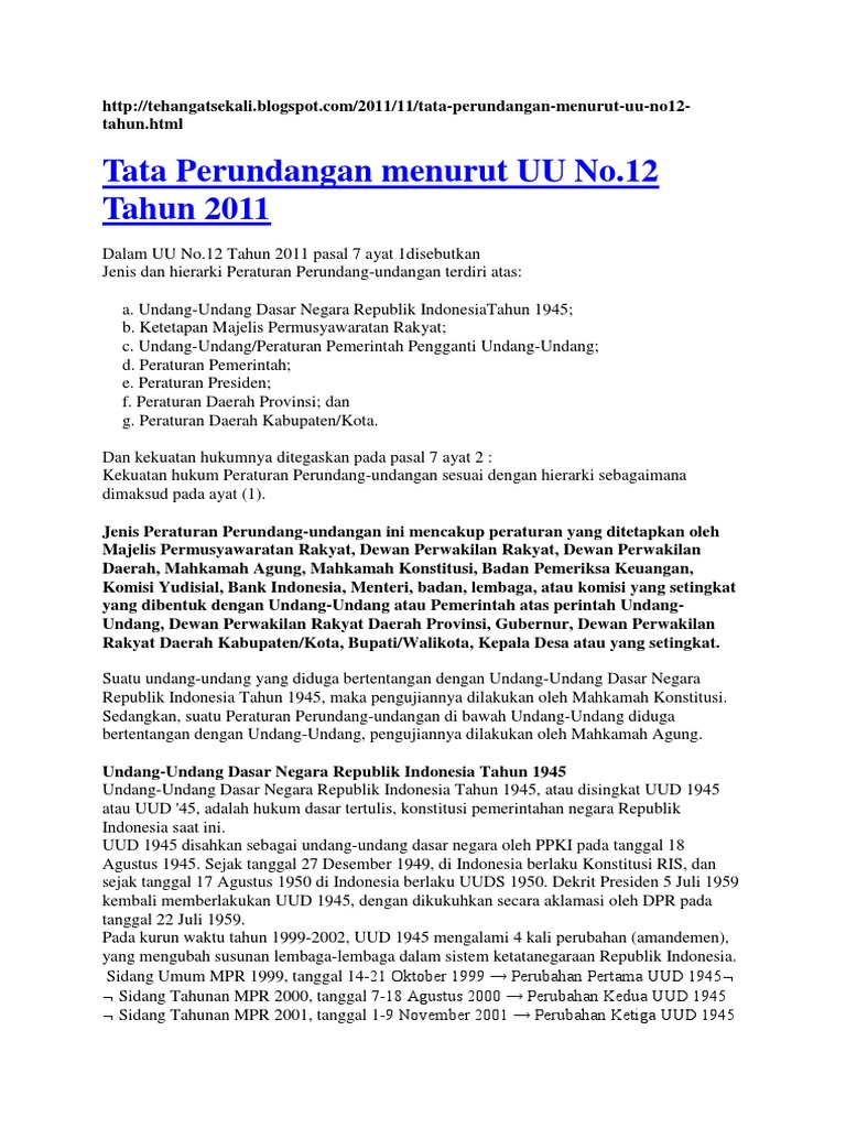 Uu Nomor 12 Tahun 2011 Perihal Pembentukan Peraturan Perundang Undangan Idn Paperplane
