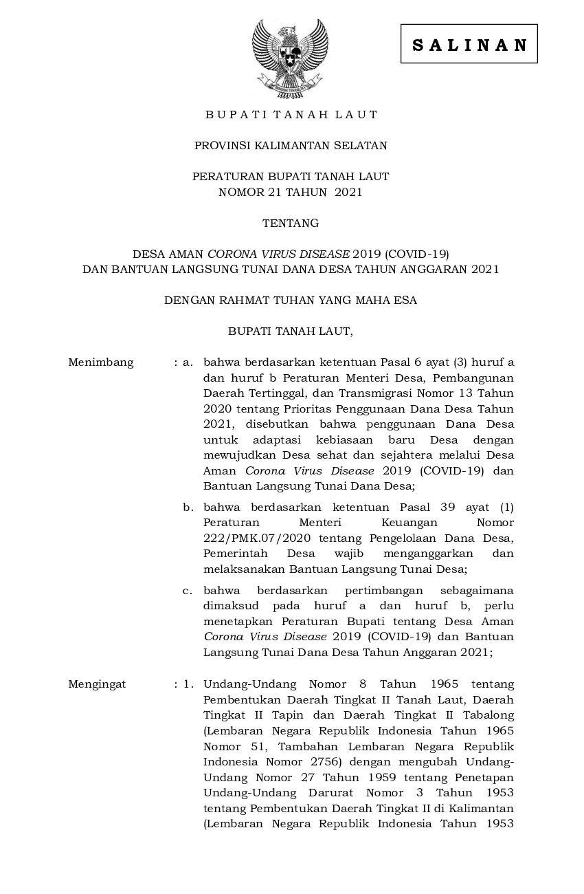 Surat Edaran Nomor 1 Tahun 2021 Regulasi Covid19 Go Id