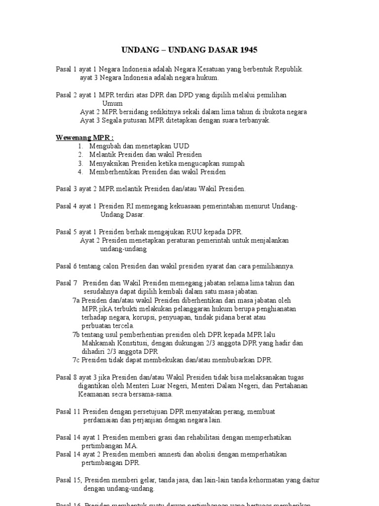Isi Bunyi Pasal 1 Uud 1945 Komunitas Guru Pkn