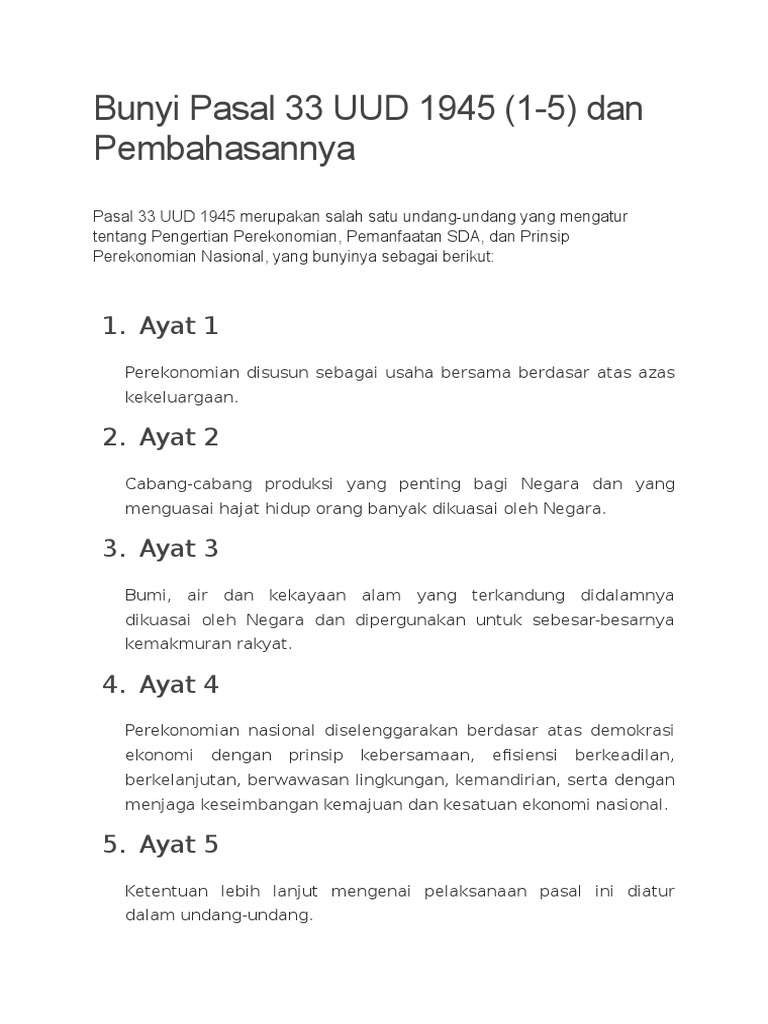 Tuliskan Bunyi Pasal 33 Uud 1945 Brainly Co Id