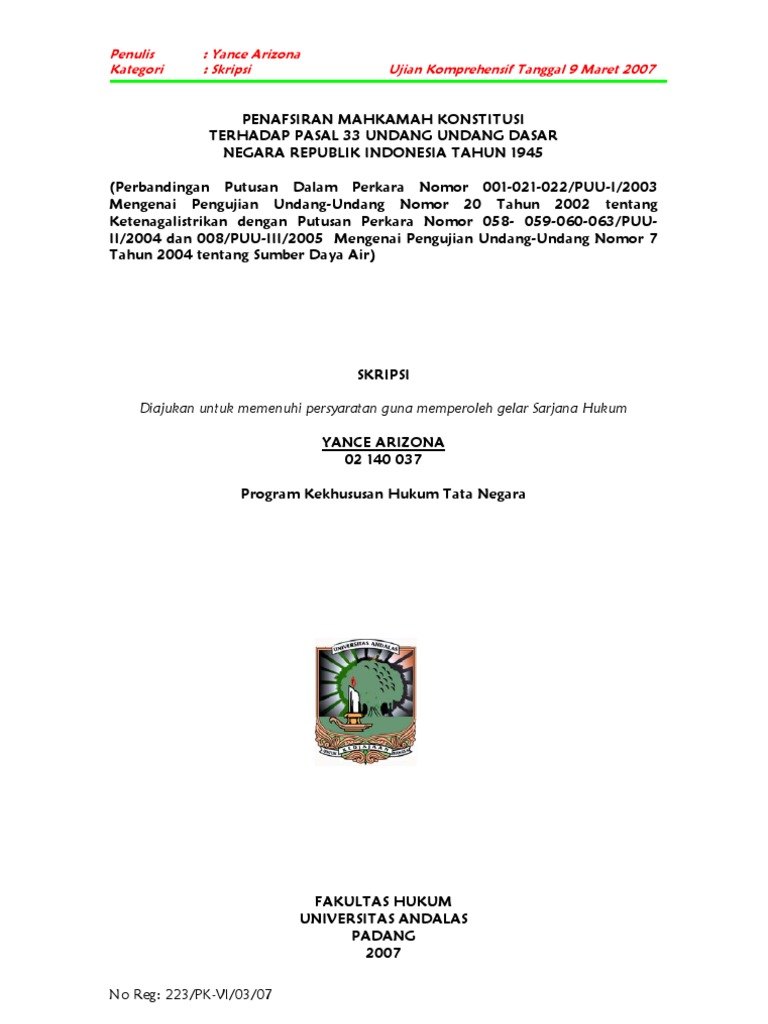 Penafsiran Mk Atas Asas Efisiensi Berkeadilan Pasal 33 Uud 1945